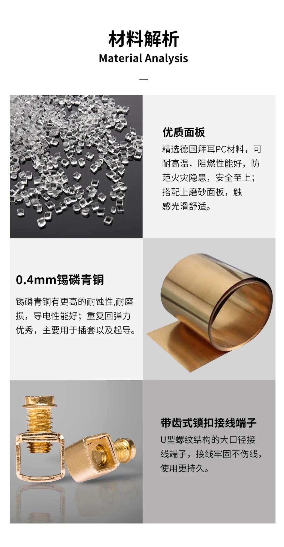 金屬配件(jiàn)采用錫磷青銅衝(chōng)壓成型(xíng)