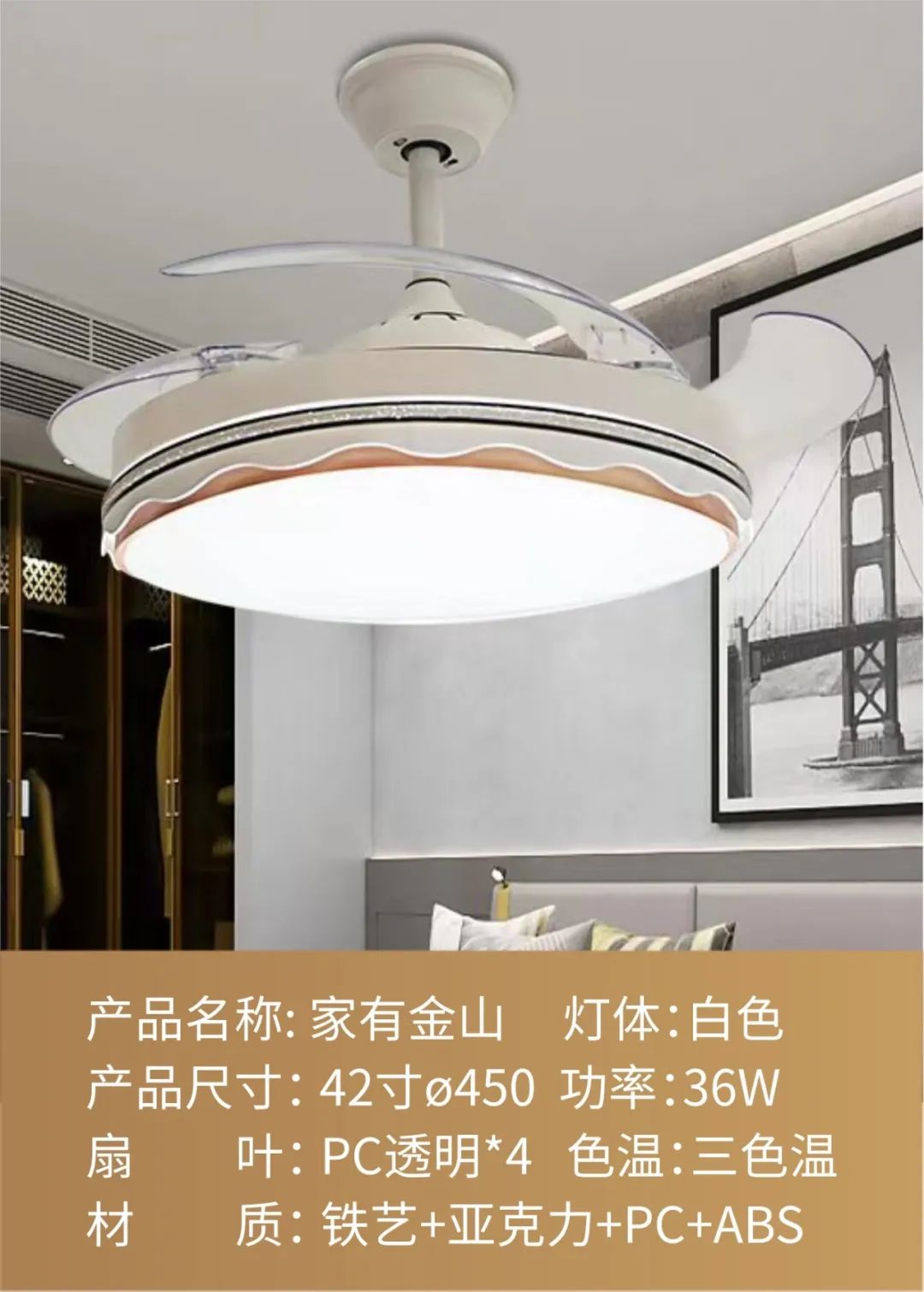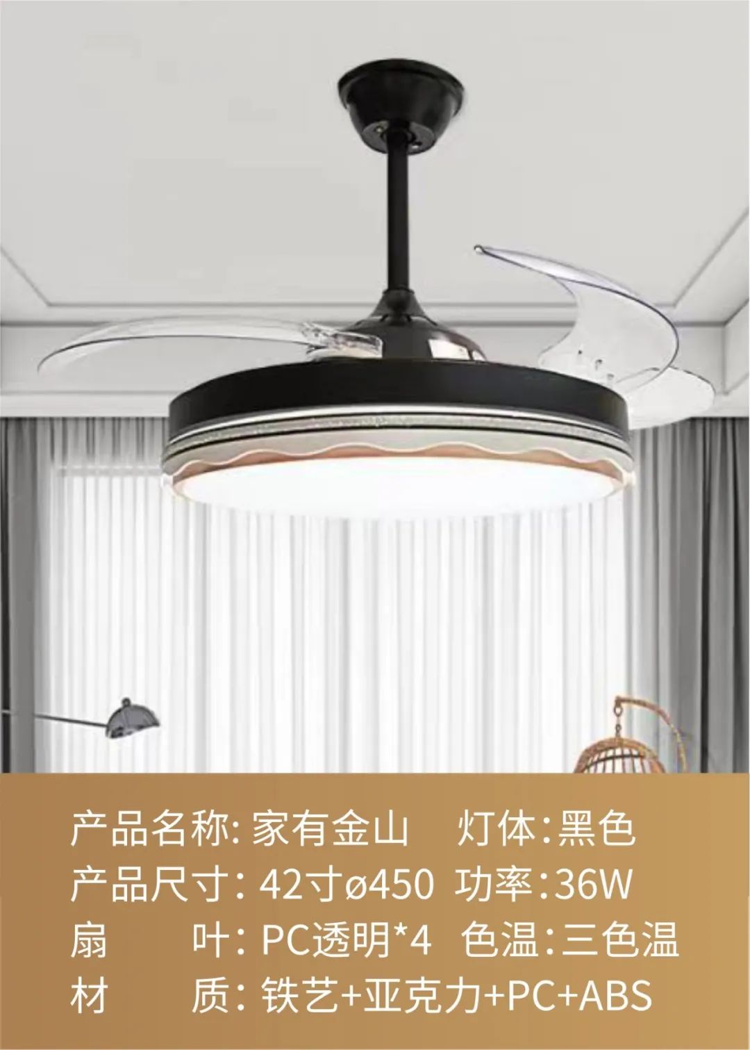 LONON風扇燈,集吊扇和吊燈於一體,具有(yǒu)照明、吹風的(de)雙重功能。