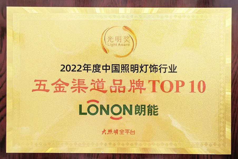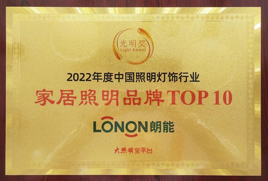 此次盛典大會,LONON照(zhào)明憑借深厚的品牌底蘊,豐富的產品組合,可靠(kào)的產品質量,獲得“2022‘光明獎’家居照明品牌TOP 10”榮譽(yù)稱號。