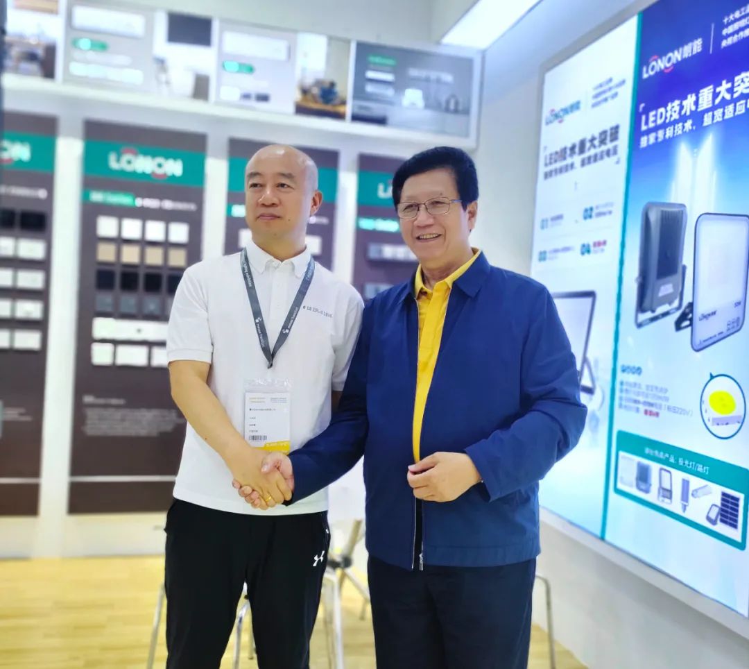 朗(lǎng)能董事長(右)與丝瓜视频污版戶外照明王總(左)在一起