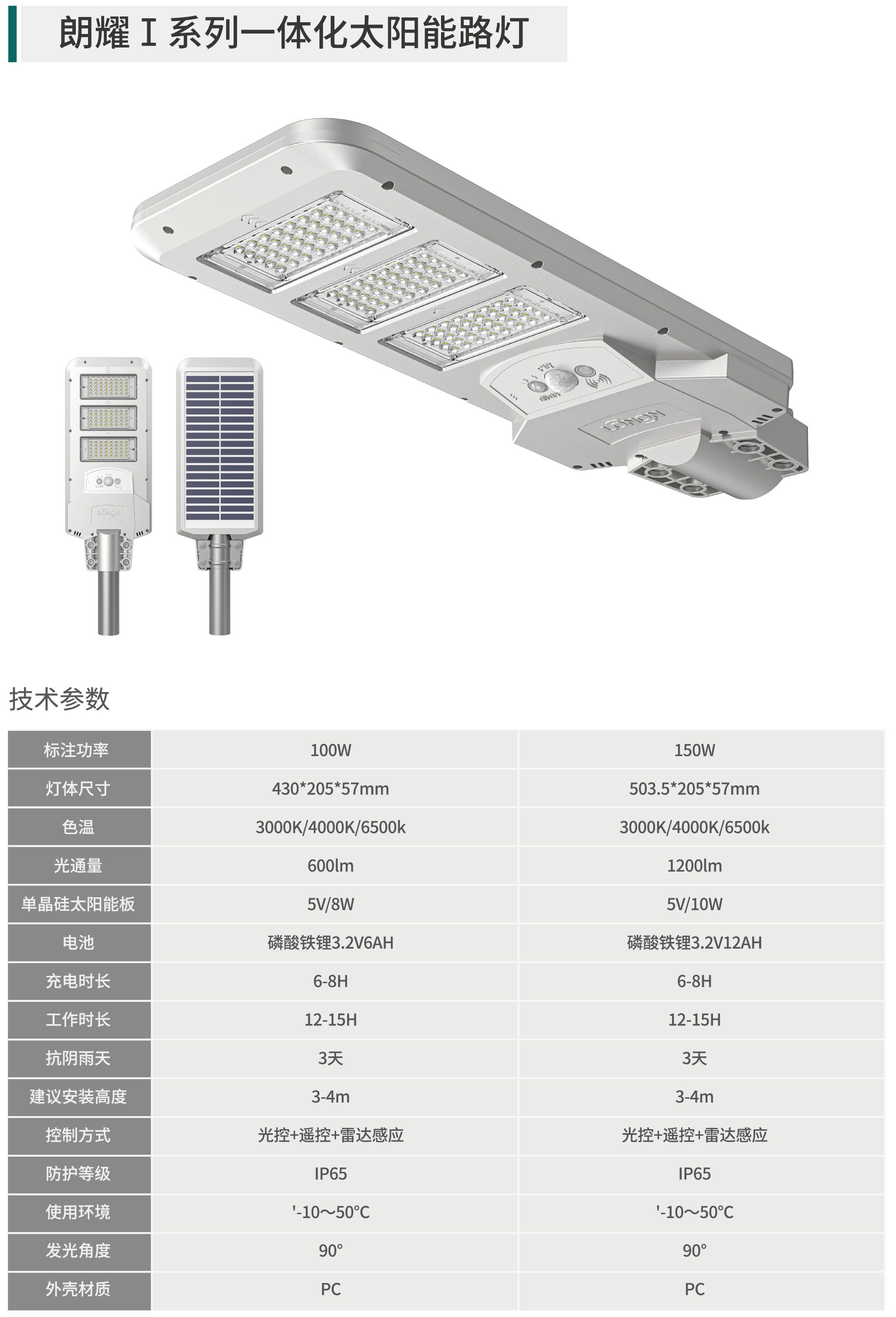 朗耀Ⅰ係列一體化太陽能路燈